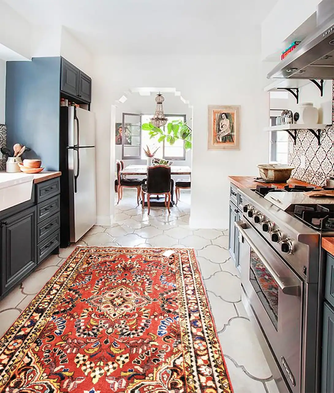 Boroujerd is a district located in the western part of Iran in the province of Lorestan, where the famous Lori tribal rugs are woven. However, Boroujerd rugs have a striking resemblance not to Lori rugs, but to the rugs of Malayer. A Boroujerd rug typically features an allover pattern consisting of the famous Persian rug motif, the Boteh. The rugs are woven with the best materials and are one of the highest tribal standards. They come in various colors such as red, burgundy, ivory, and navy blue. Traditional floral designs are not uncommon in these rugs.