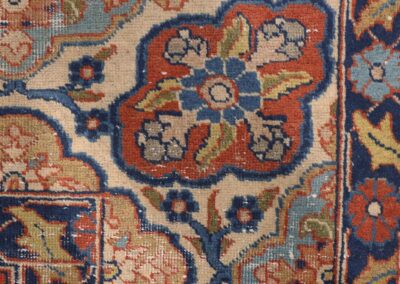 This 70-year-old piece exemplifies the superior craftsmanship of Khoy weavers, with its tight, precise knotting and balanced composition. The meticulous attention to detail is evident in every element, from the crisp delineation of the border patterns to the subtle color transitions throughout the field. Its modest size makes it perfect as an accent piece for an intimate setting, such as beneath a coffee table or as a distinguished wall hanging.