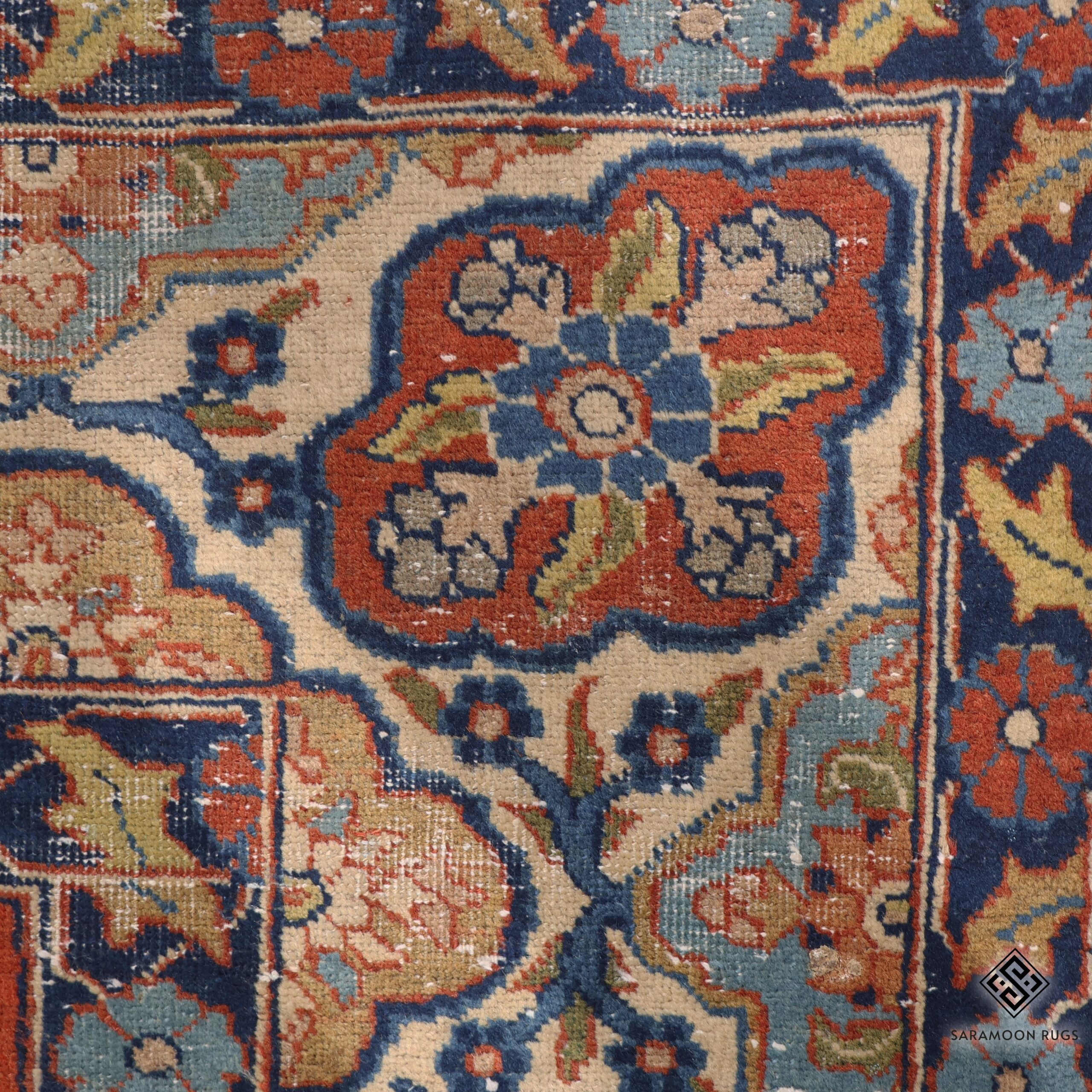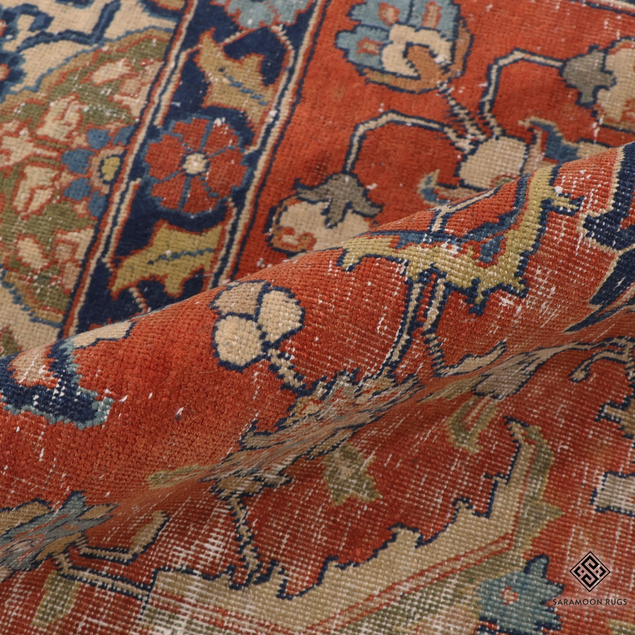 The pile material is 100% natural fine wool and the foundation is made of natural cotton, ensuring both durability and a luxurious feel that has stood the test of time.