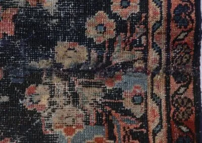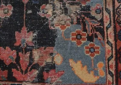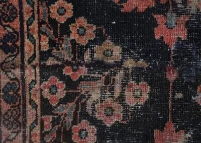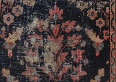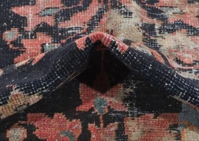 This 80-year-old masterpiece demonstrates the exceptional craftsmanship characteristic of Meshkabad weavers. Each knot has been meticulously hand-tied, creating a dense and durable weave that has stood the test of time. The rug’s modest size makes it perfect as an accent piece in an entryway, beside a bed, or as a sophisticated addition to a reading nook. Its distressed appearance adds character and charm, making it an ideal choice for both traditional and contemporary interiors.