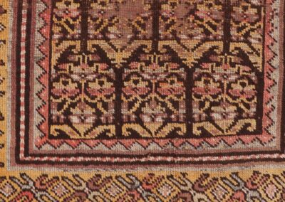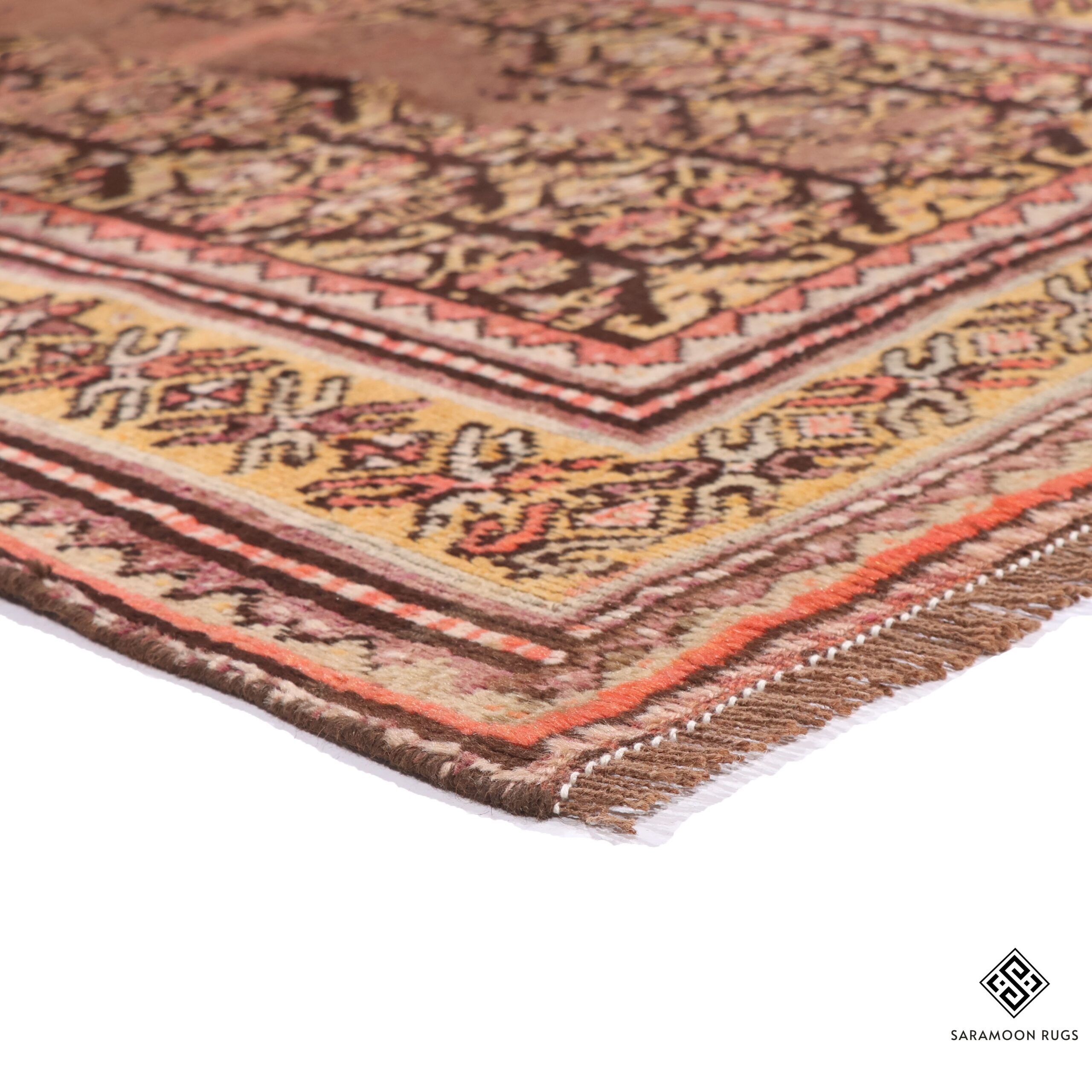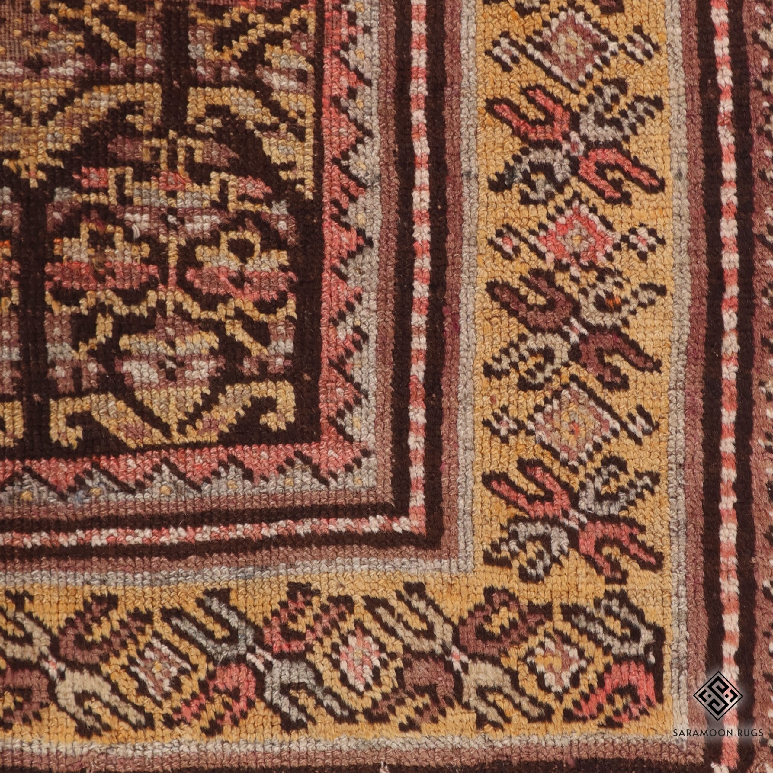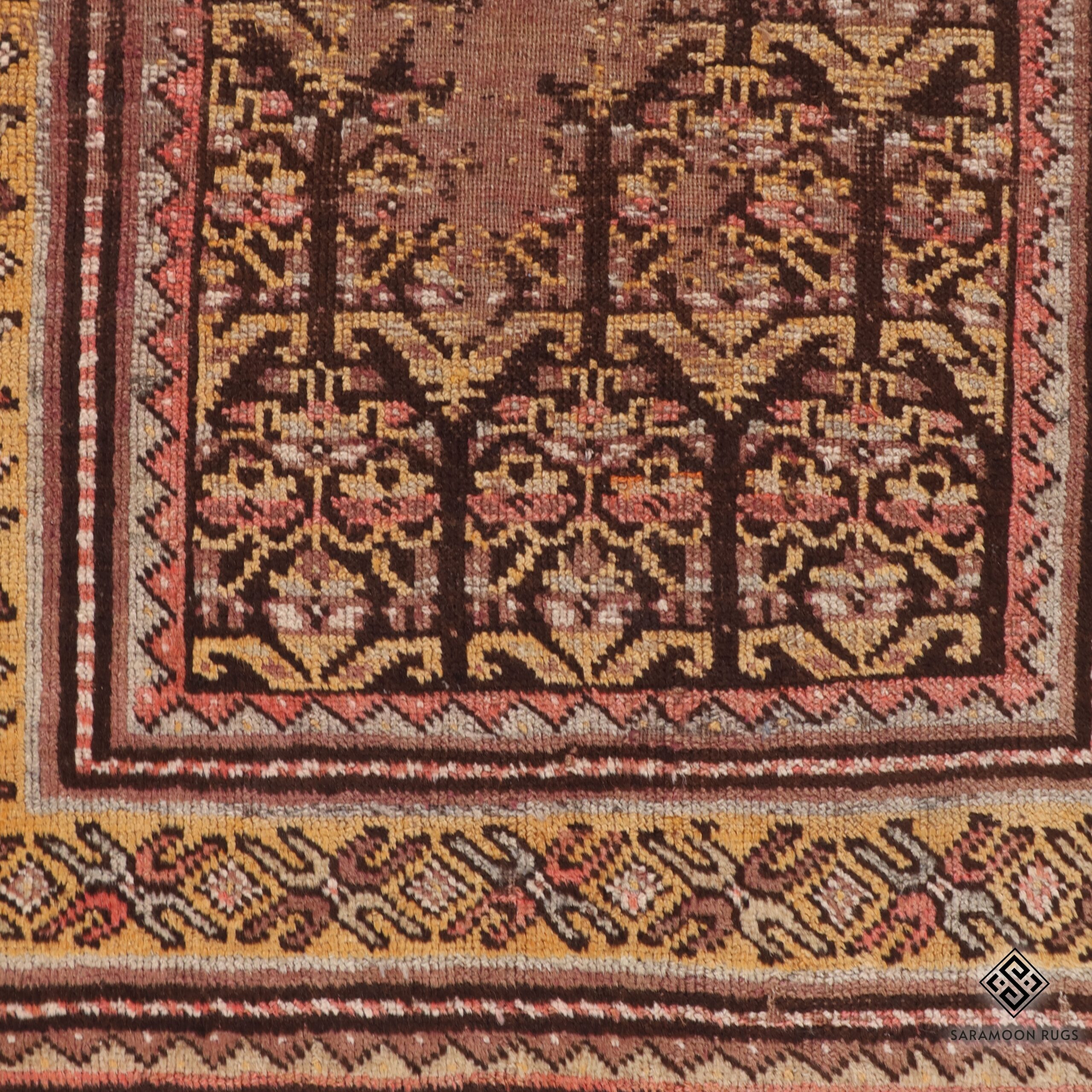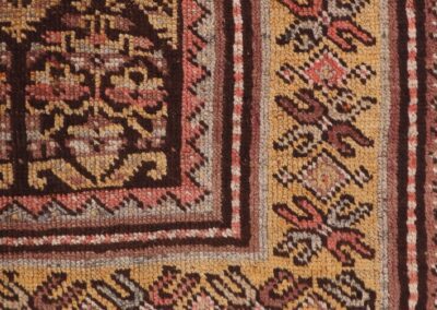This 80-year-old rug exemplifies superior craftsmanship through its meticulous hand-knotting technique, demonstrating the exceptional skill of its artisans. The dense weave ensures durability while maintaining a refined, low profile that makes it ideal for both high-traffic areas and formal spaces. Its versatile size makes it perfect as an accent piece in a living room, study, or as an elegant addition to a dining area.