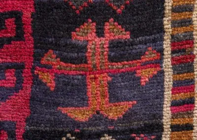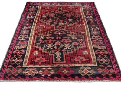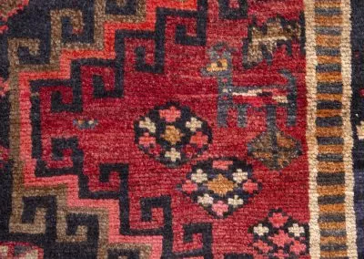 Bakhtiyari is one of the oldest and most well-known Persian clans and this Bakhtiari rug has three Toranj with brightest and most vivid of all nomadic rugs.The Bakhtiari tribe, who were formerly nomadic by nature, made their way to the Zagros region, southwest of Isfahan, around the turn of the 19th century. After they relocated here, both the quantity and quality of rugs produced rose dramatically. Today, this region is home to about 200 rug-weaving villages that produce some of the cutest rugs in the entire world. To the southeast of Isfahan, in Shahr-Kurd, is where the Bakhtiari weaving sector is currently centred.