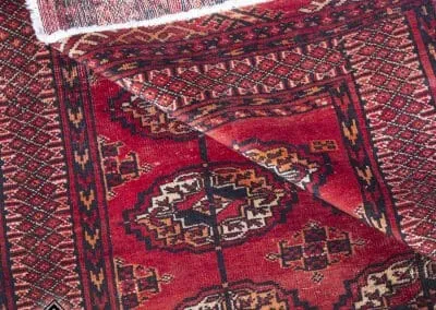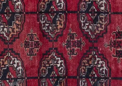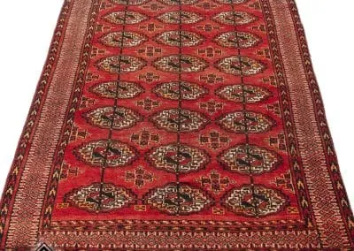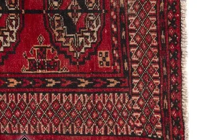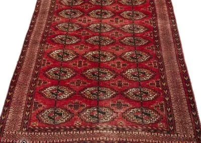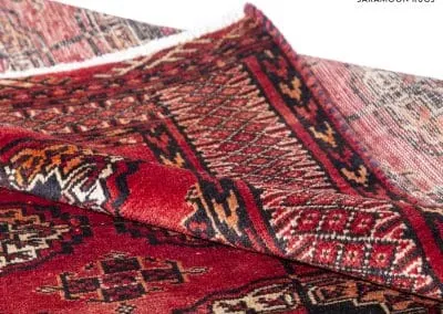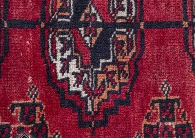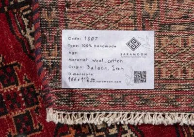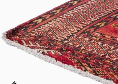 The region of Balochistan, which is the birthplace of the Baluch rug (also known as a Belouch, Baluch, or Balooch), is in south-eastern Kerman in Iran, western Pakistan, and southern Afghanistan. This carpet feature repeat medallions. White, ivory, and orange designs stand out against the dark red backgrounds. This rug offers a high level of resilience while being soft and flexible. Don’t miss the chance of having this unique art in your home.