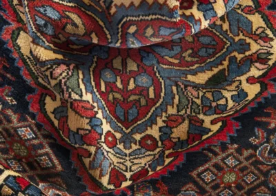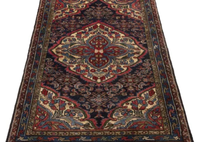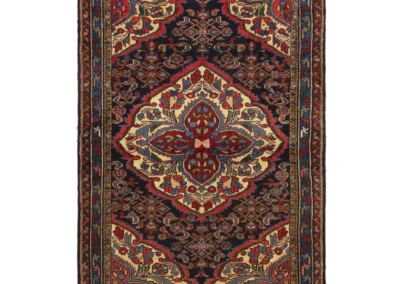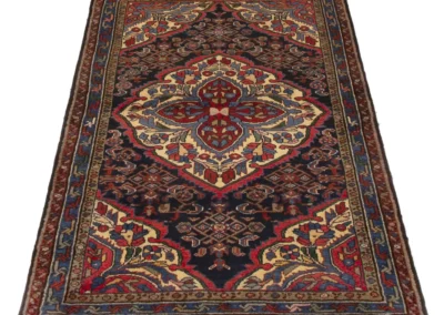 The craftsmanship exemplifies the robust, enduring quality characteristic of Hamedan village production. Hand-knotted using traditional techniques passed down through generations, this rug displays the authentic irregularities and charming imperfections that collectors prize in genuine vintage pieces. At approximately 85 years old, it has developed a beautiful natural patina and lustrous sheen that only time can bestow. The medium pile height offers both comfort underfoot and durability for daily use. This versatile size makes it ideal for anchoring intimate seating arrangements, enhancing entryways, defining bedroom spaces, or adding cultural sophistication to studies and home offices. Its compact proportions and rich coloration allow it to integrate seamlessly into both traditional and contemporary interiors.