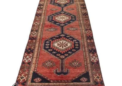 Not only is Hamadan one of the oldest cities in Iran, but it is also among the oldest cities in the whole globe. It was formerly referred to as the “cradle of Oriental civilization”. This Hamadan rug woven on a cotton foundation using hardy wool from the sheep is proven to withstand years of rigorous use. The carpet has a geometric pattern, with a single central medallion. Strong reds and blues make up the majority of the color palette, with white serving as a contrast. Don’t miss the chance of having this unique art in your home.