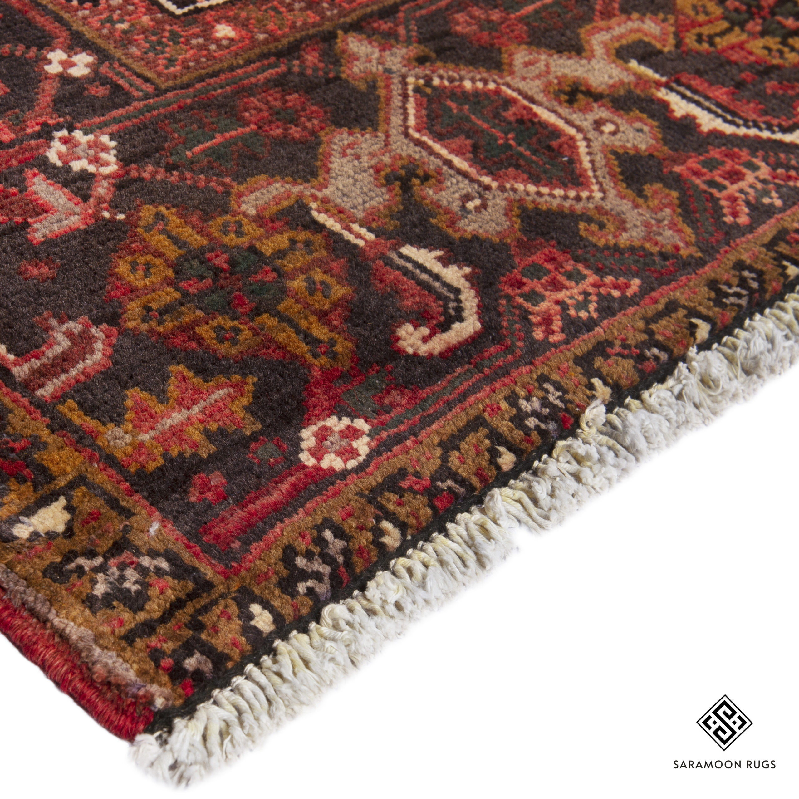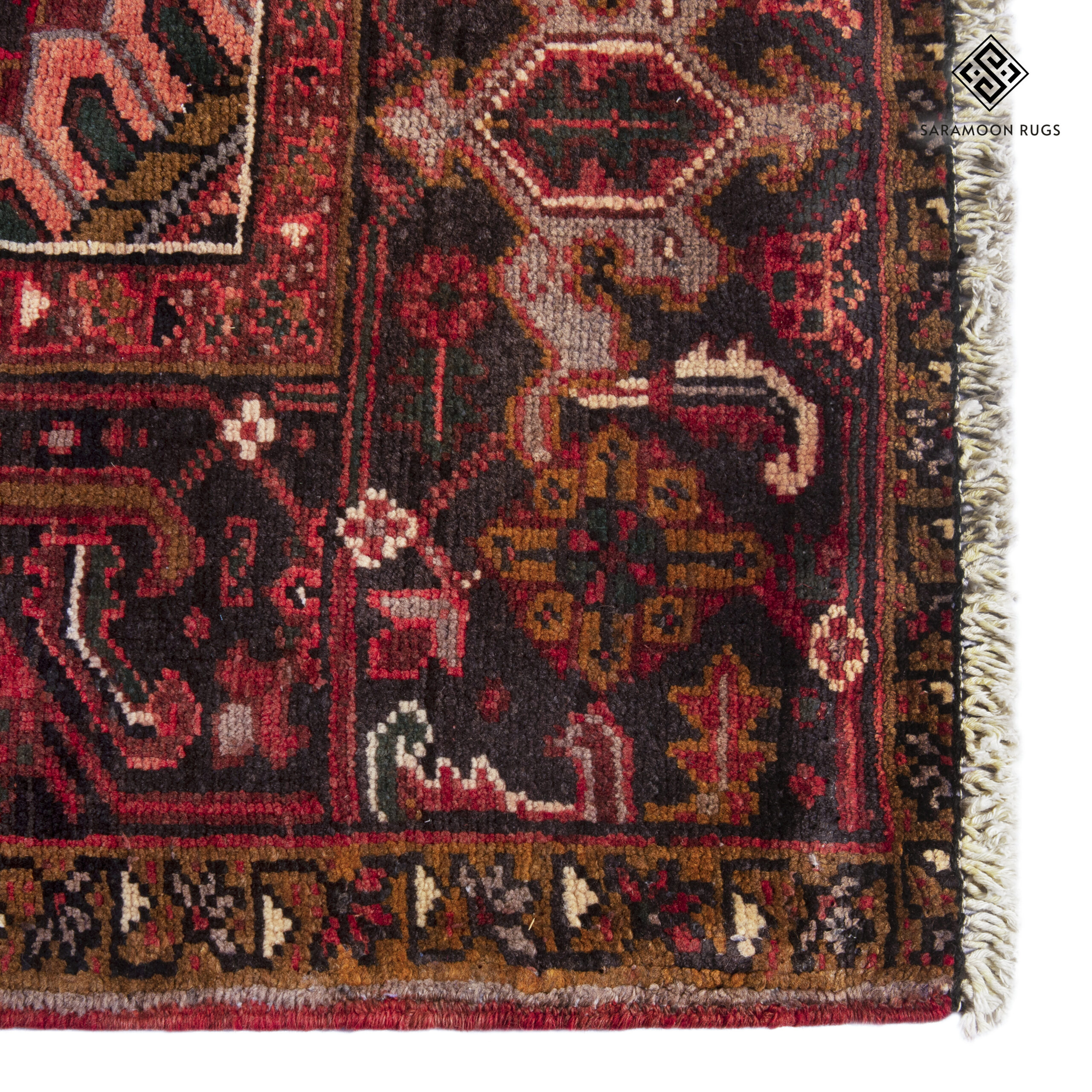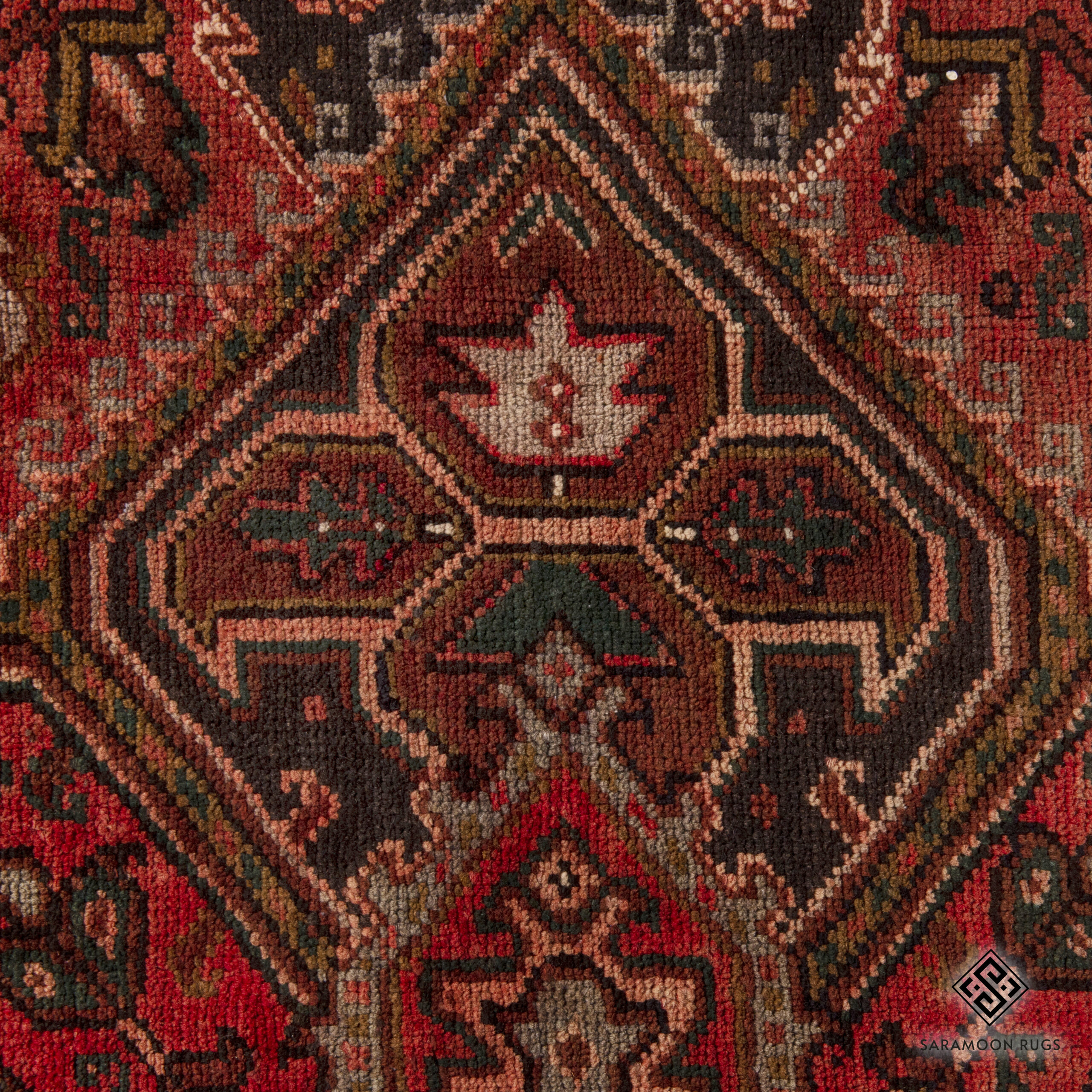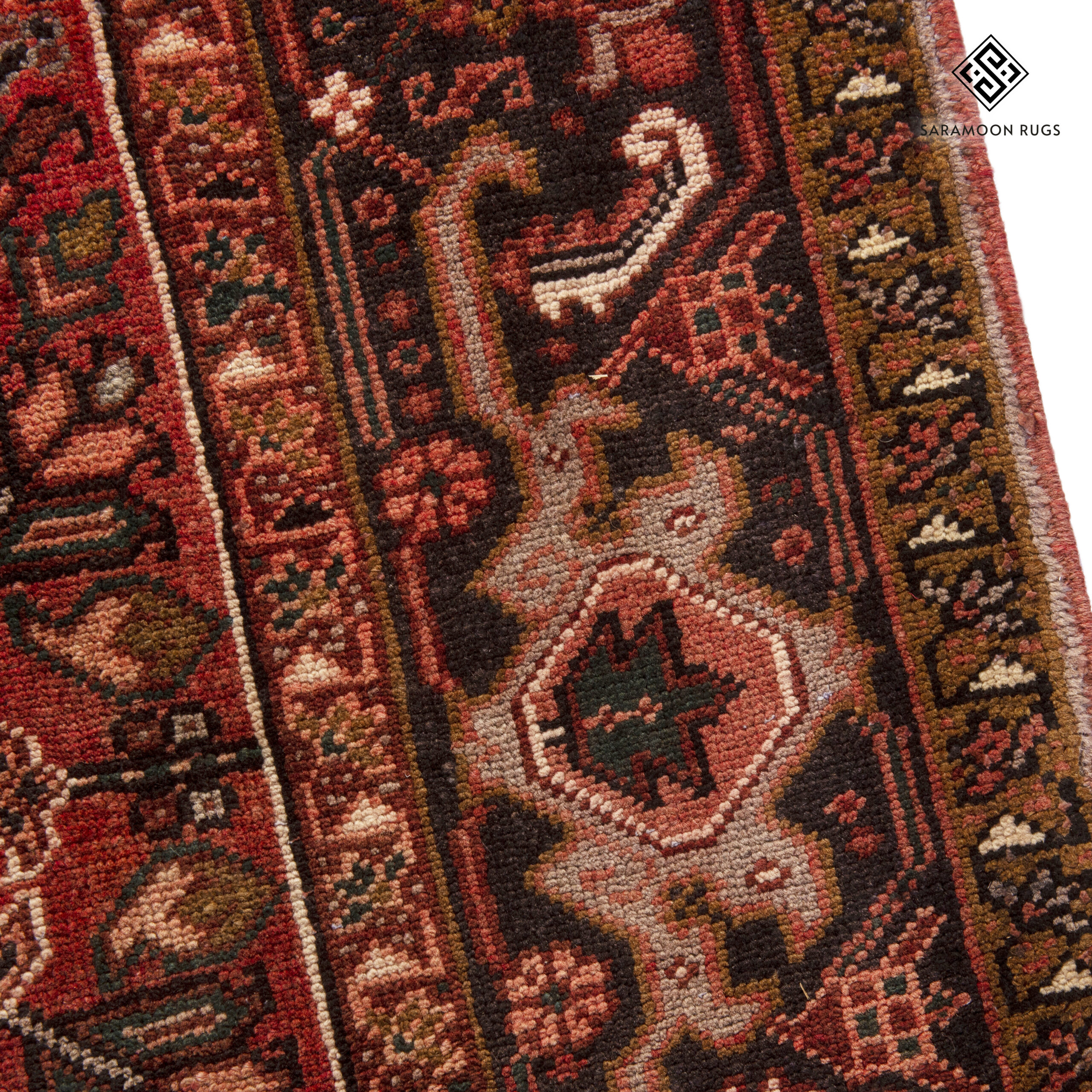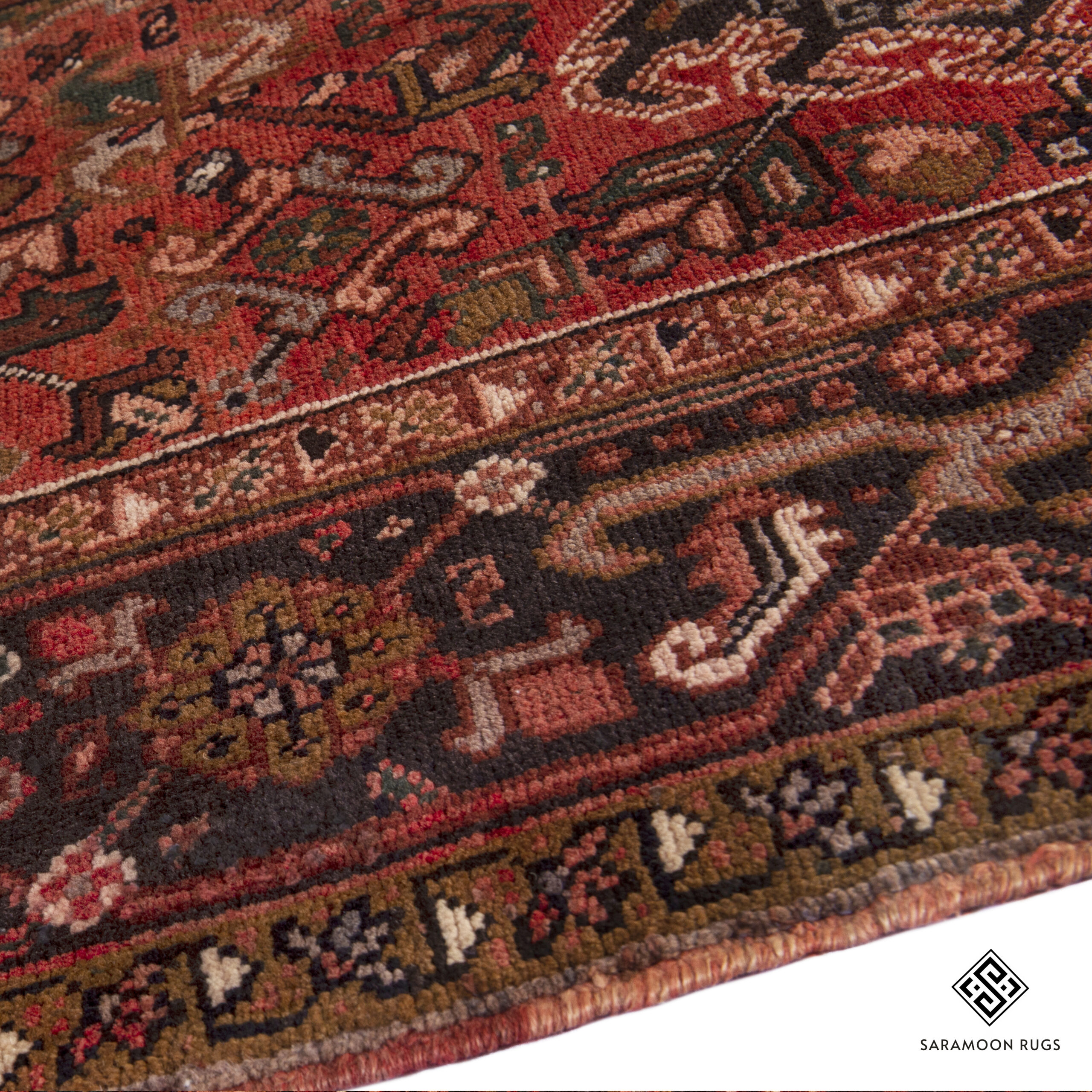 This stunning vintage Heriz rug commands attention with its magnificent presence and timeless architectural composition. The piece showcases the bold, geometric aesthetic that has made Heriz weavings among the most coveted and recognizable of all Persian rug traditions. Its substantial proportions and striking visual impact create an immediate sense of grandeur, while the beautifully mellowed patina speaks to decades of graceful aging, imbuing the piece with an authentic vintage character that cannot be replicated in contemporary productions.