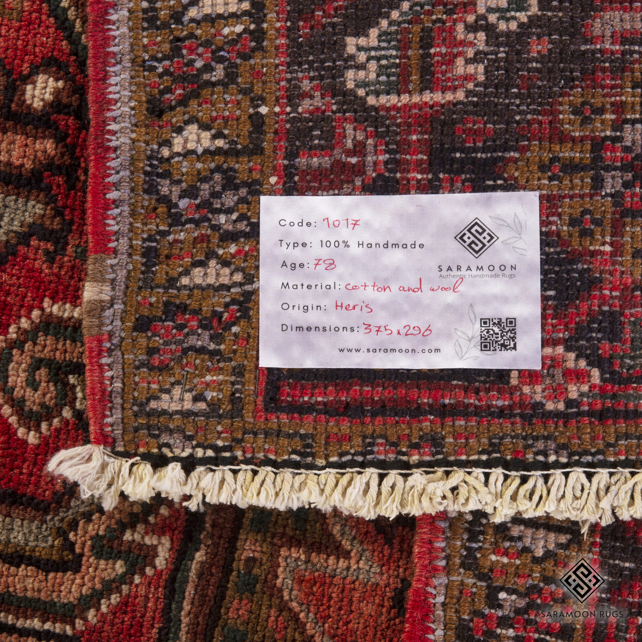 The craftsmanship exemplifies the robust village weaving tradition for which Heriz is celebrated. The substantial construction features a sturdy cotton foundation with a generous wool pile, hand-knotted using the symmetrical Turkish knot that provides exceptional durability and longevity. This rug displays the characteristic slightly coarse yet incredibly resilient weave that has allowed Heriz rugs to grace the floors of distinguished homes for generations while maintaining their beauty and structural integrity. The natural abrash—subtle color variations within individual hues—adds wonderful depth and visual interest, evidence of hand-dyed yarns and traditional production methods. At nearly 10 by 12 feet, this rug offers exceptional versatility for large-scale interior design applications. It serves magnificently as the foundation for a formal living room, dining room, or master bedroom, providing both visual drama and enduring practicality. The generous proportions allow furniture to be arranged entirely upon the rug, creating cohesive, well-anchored room layouts. The warm, earthy palette complements both traditional and transitional design schemes, while the geometric boldness brings character to contemporary spaces seeking authentic artistic provenance. The Pile material is 100% natural fine wool and the foundation is made of natural cotton.