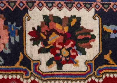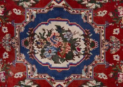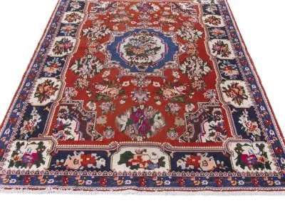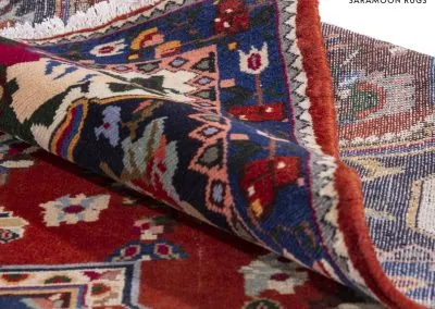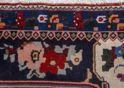 Bakhtiyari is one of the oldest and most well-known Persian clans and this Bakhtiari rug has three Toranj with the brightest and most vivid of all nomadic rugs. The Bakhtiari tribe, who were formerly nomadic by nature, made their way to the Zagros region, southwest of Isfahan, around the turn of the 19th century. After they relocated here, both the quantity and quality of rugs produced rose dramatically. Today, this region is home to about 200 rug-weaving villages that produce some of the cutest rugs in the entire world. To the southeast of Isfahan, in Shahr-Kurd, is where the Bakhtiari weaving sector is currently centered.