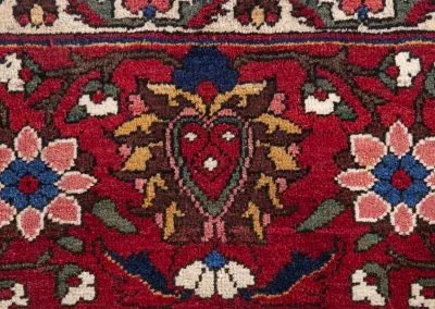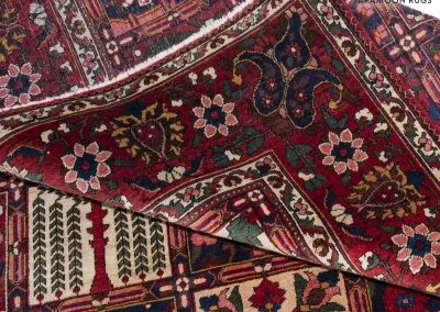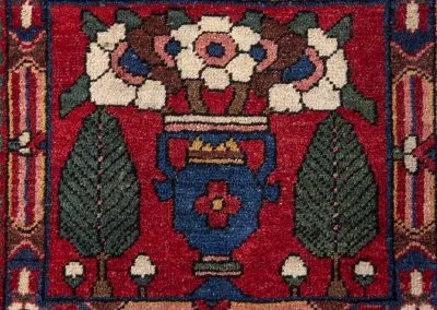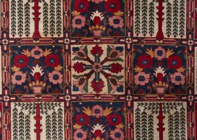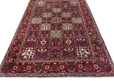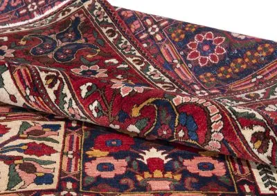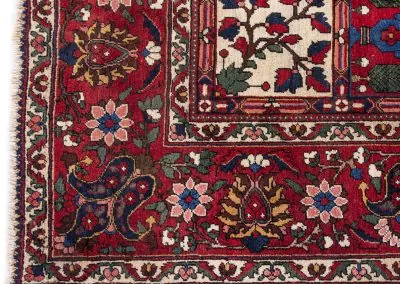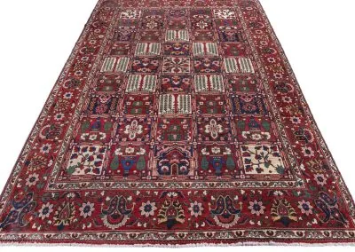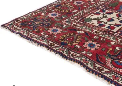 Bakhtiyari is one of the oldest and most well-known Persian clans and this Bakhtiari rug has three Toranj with brightest and most vivid of all nomadic rugs.The Bakhtiari tribe, who were formerly nomadic by nature, made their way to the Zagros region, southwest of Isfahan, around the turn of the 19th century. After they relocated here, both the quantity and quality of rugs produced rose dramatically. Today, this region is home to about 200 rug-weaving villages that produce some of the cutest rugs in the entire world. To the southeast of Isfahan, in Shahr-Kurd, is where the Bakhtiari weaving sector is currently centered.