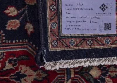 This rug is 60 years old and older carpets from the Hamadan region are particularly highly regarded. They were knotted on a cotton warp and were known as Shahr-baff, a combination of the words for “city” and “knots.” Unfortunately, these carpets are now difficult to find. In general, carpets from this region are considered to be everyday carpets that are known for their durability.