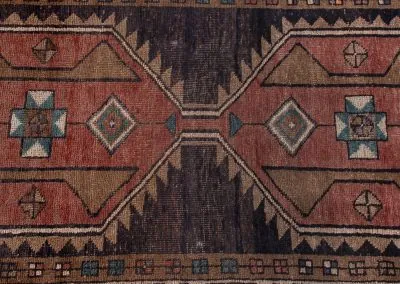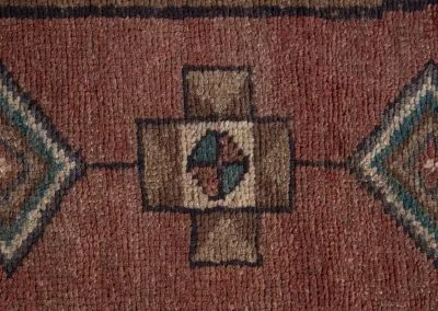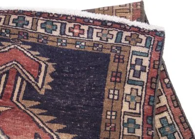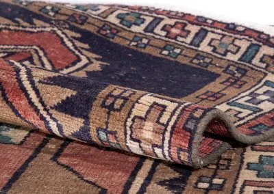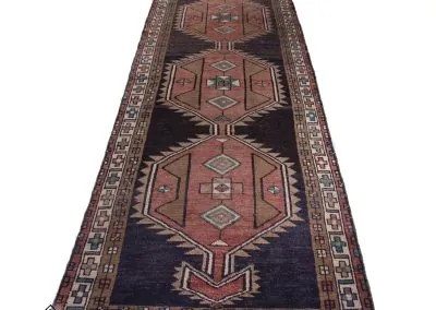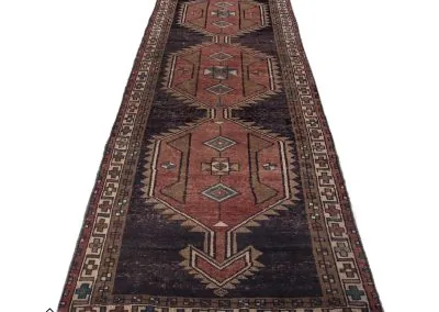 Sarab, located in northwestern Iran in Azerbaijan, is known for producing high-quality rug runners and doormat-sized rugs. Historically, the region, which includes Sarab and the surrounding areas of Heriz, Ahar, and Gorevan, was known as the Khanate of Sarab before 1813. The width of the rug runners is limited to just under 4 feet due to the use of traditional looms that are smaller in size for transportation purposes. Sarab rugs are made using a combination of Persian and Turkish knots, and have a higher quality than most rug runners, with knot counts ranging from 80 to 100 per square inch.