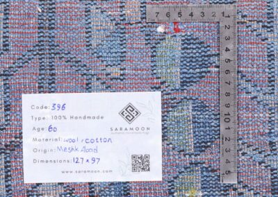 This 60-year-old rug demonstrates exceptional craftsmanship with its tight weave and precise geometric patterns. The meticulous attention to detail is evident in every knot, creating a durable yet refined piece that has stood the test of time. Its intimate size makes it perfect as a distinctive accent piece for a study, entryway, or as an elegant addition to a collection of fine textiles.