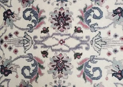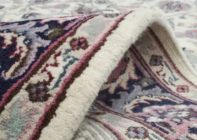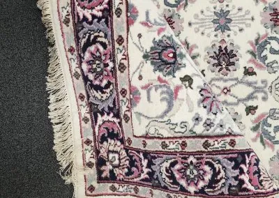 Pile material is 100% natural fine wool and foundation are made of natural cotton.