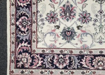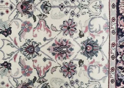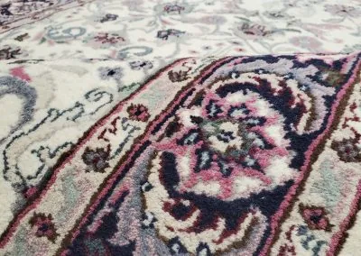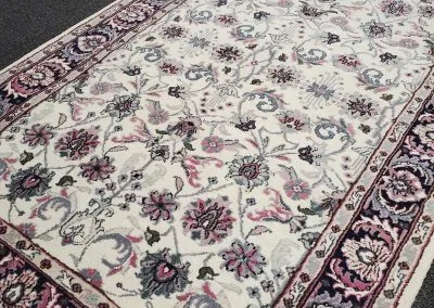 This hand-knotted rug is designed with a beautiful classic all-over pattern in bright colours. The rug is in like-new condition.