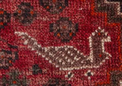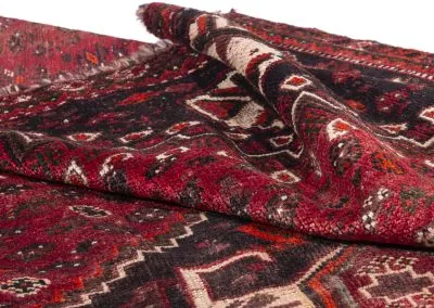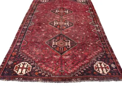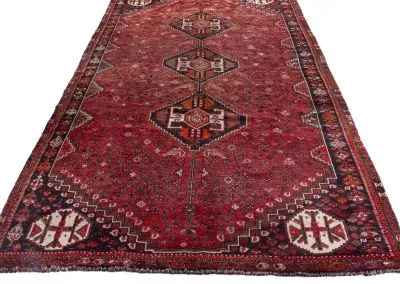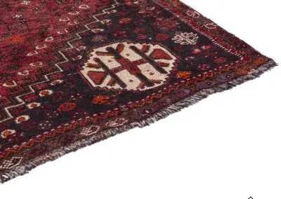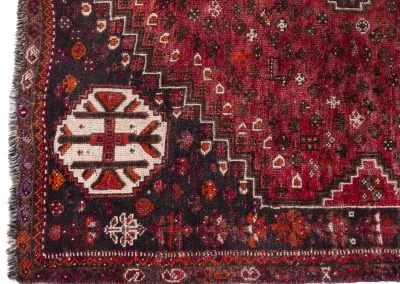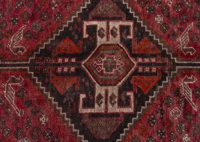 This is an antique Shiraz rug which has more than 50 years old. the perfect beauty with amazing colours that are shining after all these years. Motifs imitate Qashqai, Khamseh (Basseri and Khamseh Arabs), Afshar, Abadeh, and Luri designs since they tend to come from established tribal weavers. In this carpet Persian (asymmetrical) knot is used with a coarser knot than Qashqai and Abadeh rugs, which have both finer knots. Cyrus’ white horse can be seen on this carpet. Only the Shiraz carpet features nightingales, which are represented as angular-shaped birds. These birds are thought to represent pleasure and satisfaction. It’s a true art piece and completely a unique one. Don’t miss the chance of having this unique art in your home.