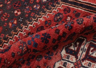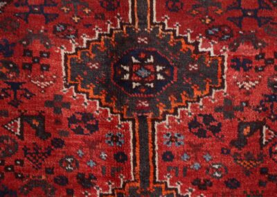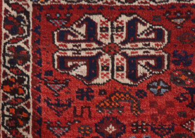 This masterfully crafted piece demonstrates the superior workmanship characteristic of Shiraz weavers. The tight, precise knotting and balanced composition speak to the weaver’s expertise, while the subtle variations in color and pattern reveal its authentic handmade nature. This versatile size makes it perfect as a sophisticated accent piece in a study, as a focal point under a coffee table, or as an elegant addition to an entryway.