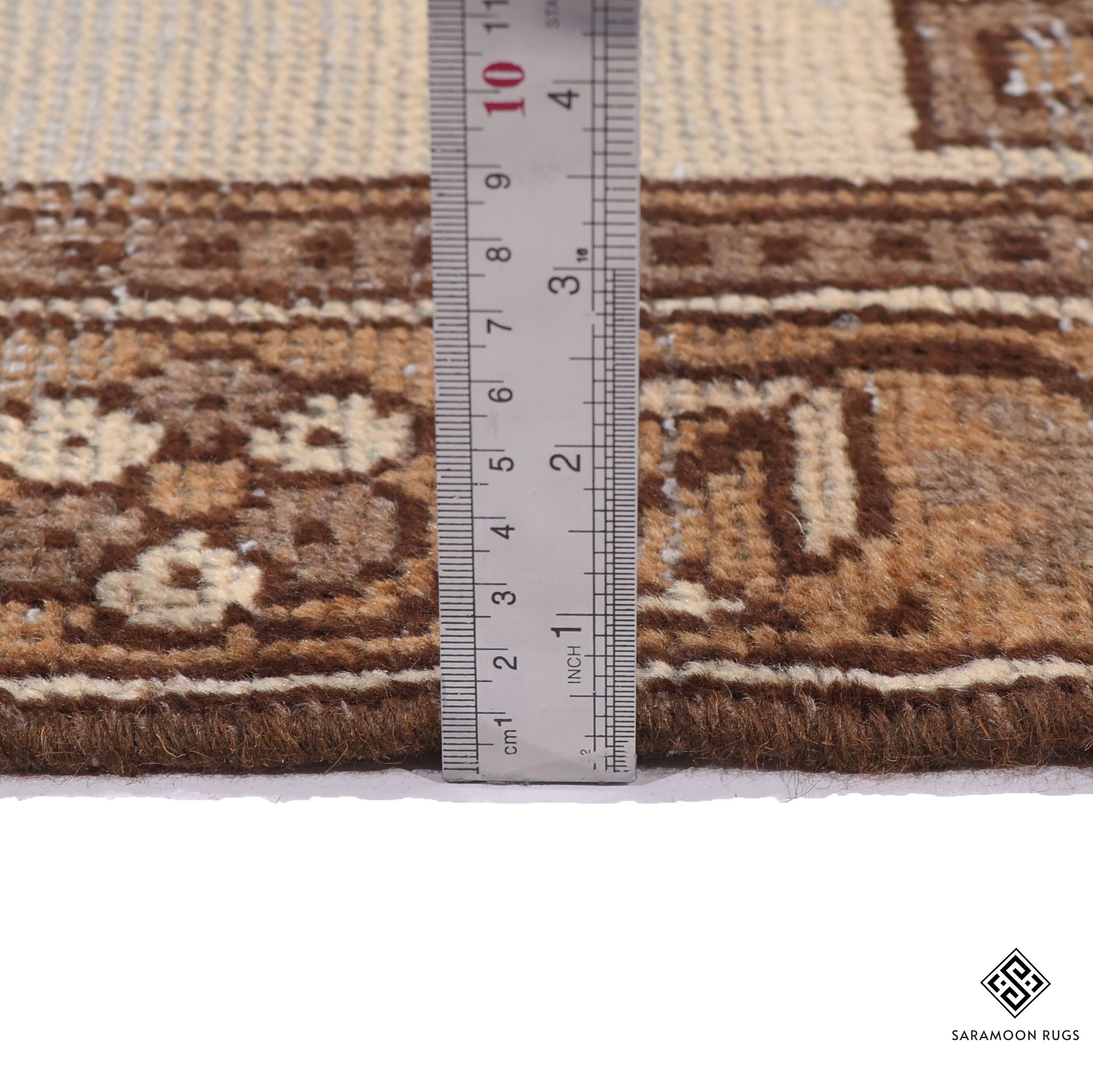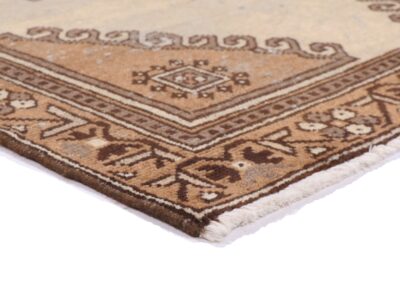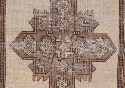 Dating back approximately 60 years, this rug demonstrates exceptional craftsmanship through its meticulous hand-knotting technique. The balanced composition and precise execution of patterns speak to the weaver’s expertise. Its versatile size makes it perfect for adding warmth and character to an entryway, as a sophisticated accent piece beneath a coffee table, or as an elegant focal point in a dining area.
