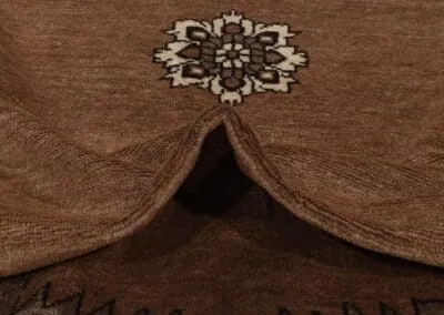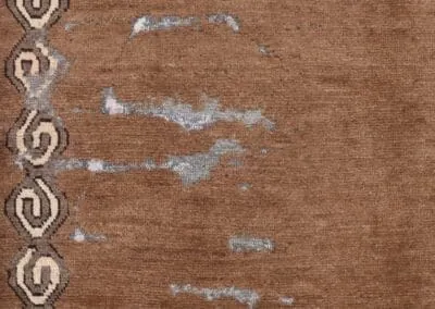 The pile material is 100% natural fine wool and the foundation is made of natural cotton, ensuring both durability and a luxurious feel underfoot.