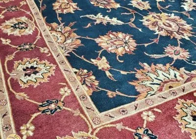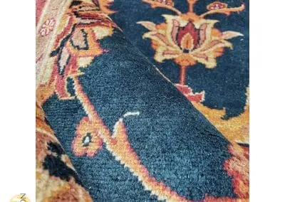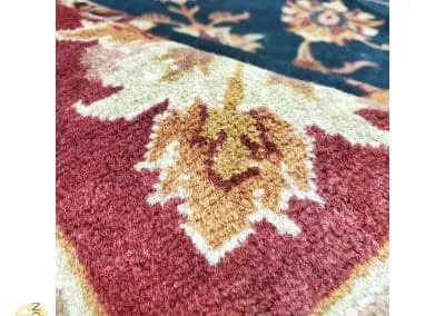 Pile material is 100% natural fine wool and foundation are made of natural cotton.