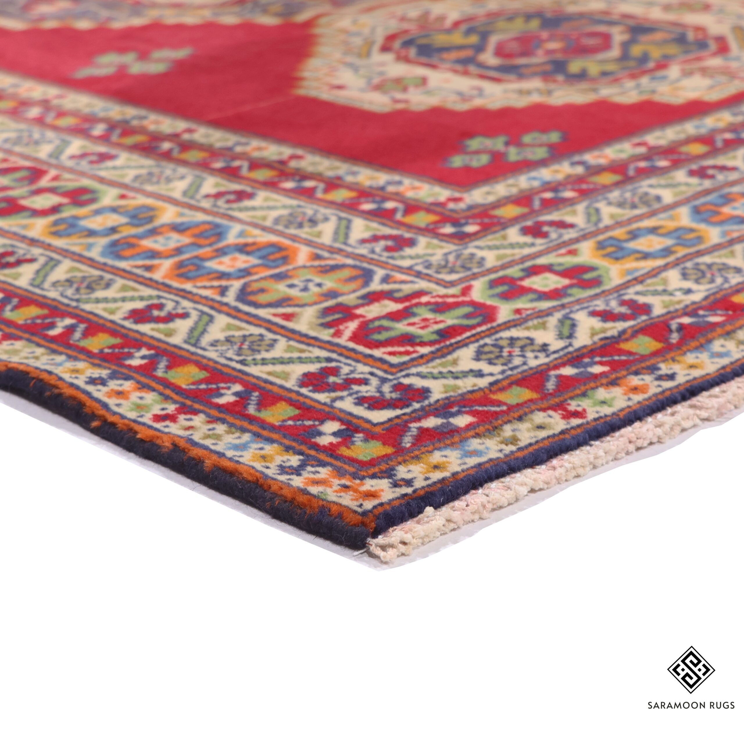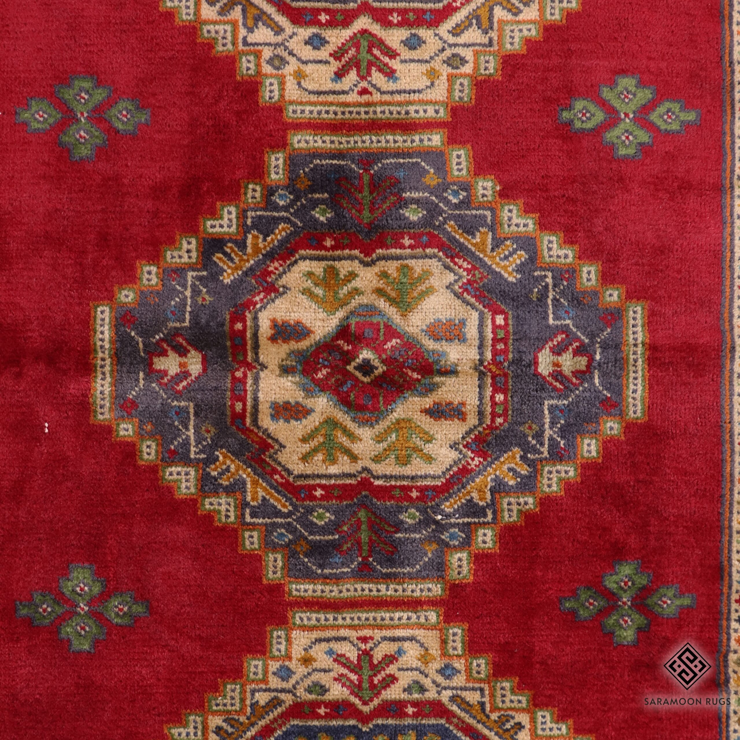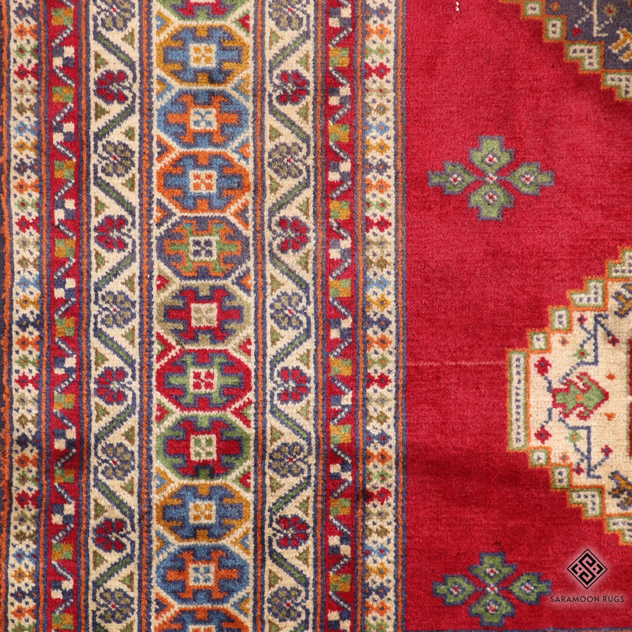 The pile material is 100% natural fine wool and the foundation is made of natural cotton, ensuring both durability and a luxurious feel underfoot. The natural materials also contribute to the rug’s rich, saturated colors and subtle variations in tone that give it depth and character.