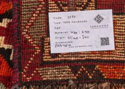 Every stitch of this rug tells a story, woven with traditional techniques passed down through generations. The wool is dyed using time-honored methods, giving the rug its dynamic and lasting color. Perfect for anyone looking to add an authentic tribal touch to their home, this Shiraz rug is not just floor covering—it’s a piece of art that brings warmth and character to any space it graces.