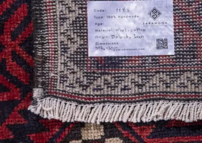 The beautiful color palette and the detailed pattern make this Balooch rug a perfect addition to any home decor, bringing a touch of elegance and warmth to any space. Its handmade quality ensures durability and a unique charm that stands out.