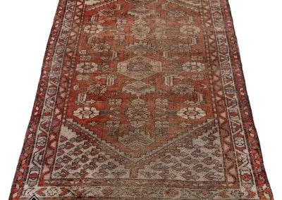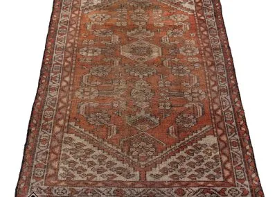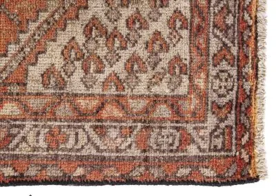 This rug is 60 years old and older carpets from the Hamadan region are particularly highly regarded. They were knotted on a cotton warp and were known as Shahr-baff, a combination of the words for “city” and “knots.” Unfortunately, these carpets are now difficult to find. In general, carpets from this region are considered to be everyday carpets that are known for their durability.