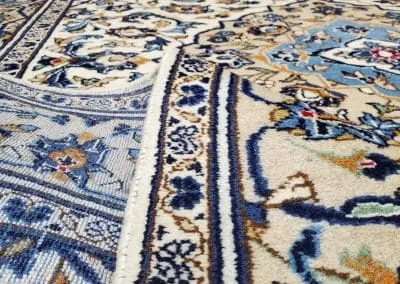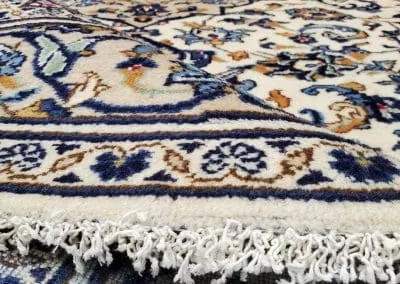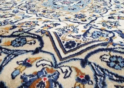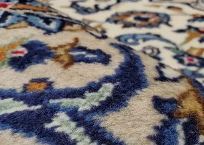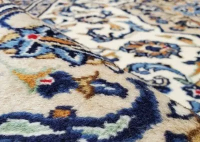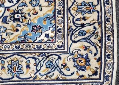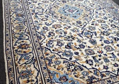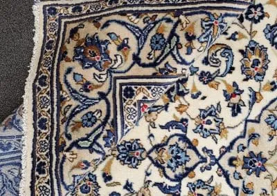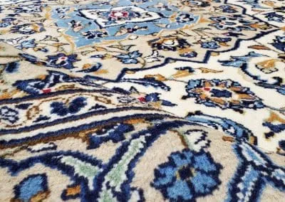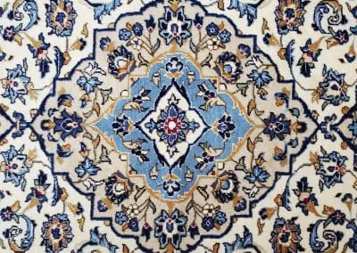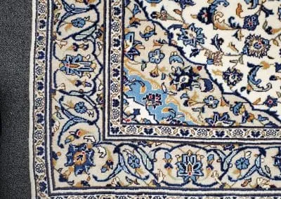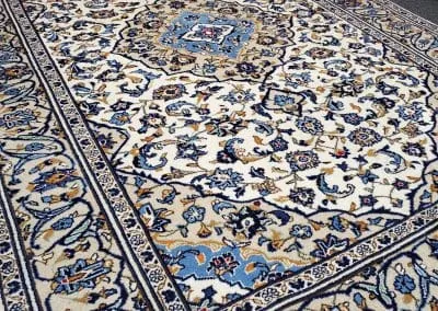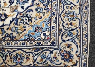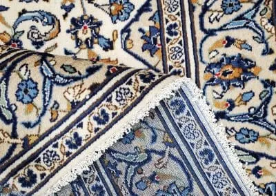 This classic Kashan rug has about 50 years old, it’s still in great condition with high pile and plush. This hand-knotted rug is made of natural wool.