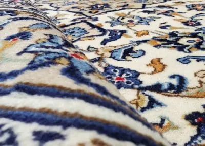 Pile material is 100% natural fine wool and foundation are made of natural cotton.