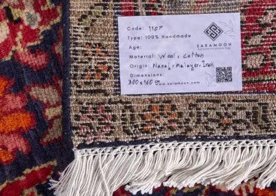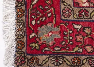 This rug is 60 years old and older carpets from the Hamadan region are particularly highly regarded. They were knotted on a cotton warp and were known as Shahr-baff, a combination of the words for “city” and “knots.” Unfortunately, these carpets are now difficult to find. In general, carpets from this region are considered to be everyday carpets that are known for their durability.