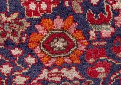 Previously, all Hamadan carpets were made using hand-spun yarn, but now industrially produced yarn is also used for more affordable versions. These cheaper carpets often have less elaborate colors, making it important to carefully choose the right one. The well-known Herati pattern and classic colors such as blue and red are prevalent. The first is traditionally made from indigo, the second from the dyer-crab, which is commonly used in Iran. Geometric patterns are the most common, but floral patterns can also be found on Persian carpets from this region.