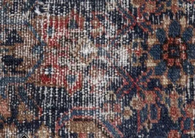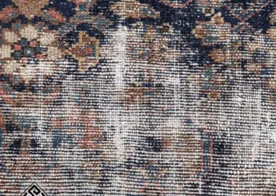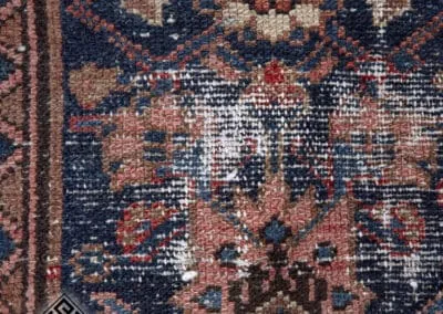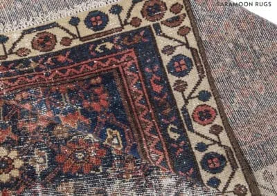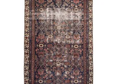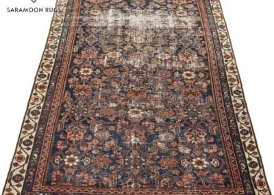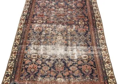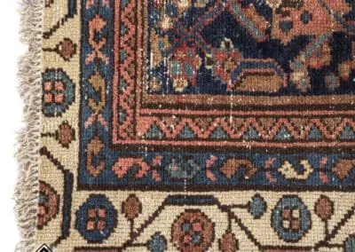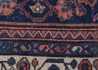 This vintage Malayer rug features the renowned Herati (Fish) design, a classic and famous Persian pattern. The rug’s deep blues, rich reds, and earthy tones highlight its traditional craftsmanship.