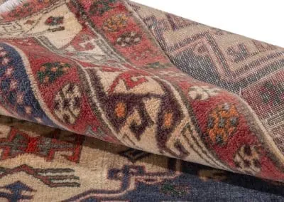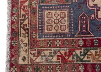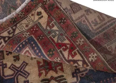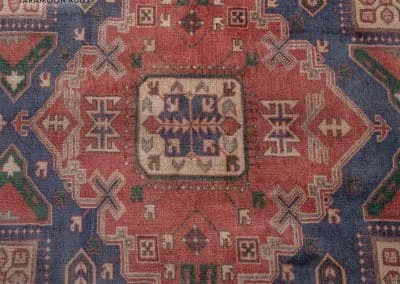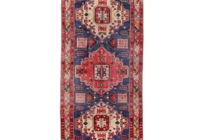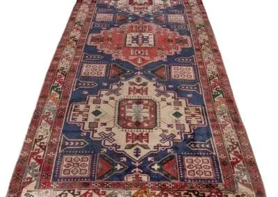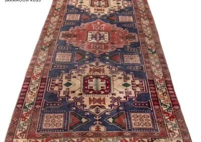 Embrace the uniqueness of our Vintage Sarab Rug, a one-of-a-kind masterpiece with a stunning blue background. Intricate medallions in vivid reds and creams are woven into the fabric of this piece, standing out beautifully against the blue. Framed by a meticulously detailed border, this handwoven rug combines durability with an air of timeless sophistication. Perfect for adding a distinctive touch of elegance to your home.