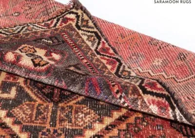 Part of our Calgary vintage rugs collection at SaraMoon Rugs, this Shiraz rug is a versatile piece that brings a touch of history and elegance to any space. Please note that the colors may vary due to the rug’s age and handmade nature. For more details, feel free to contact us. Discover the timeless beauty of vintage art with SaraMoon Rugs, your trusted source for vintage rugs in Calgary. Enjoy the charm and elegance of our high-quality Shiraz rug.
