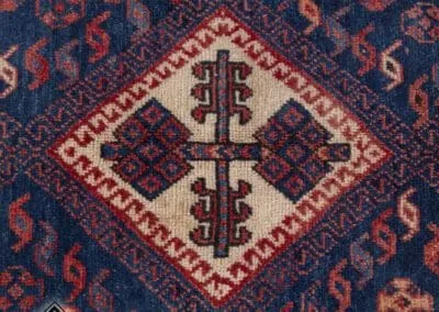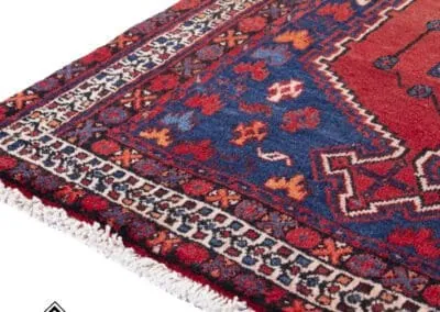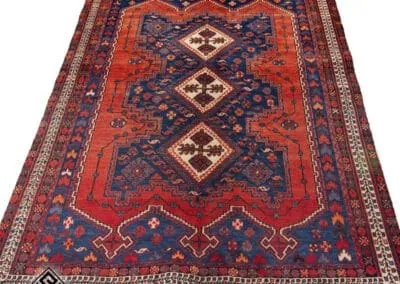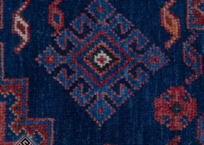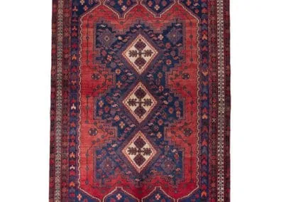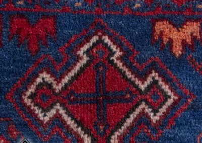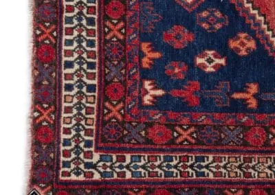 This 40-year-old Sirjan vintage rug is a testament to timeless craftsmanship. Hand-knotted with precision, it exudes quality and durability. The beautiful blend of deep blues and rich reds adds a touch of elegance to any space. This rug is not just a floor covering but a piece of cultural history, bringing authenticity and charm to your home.