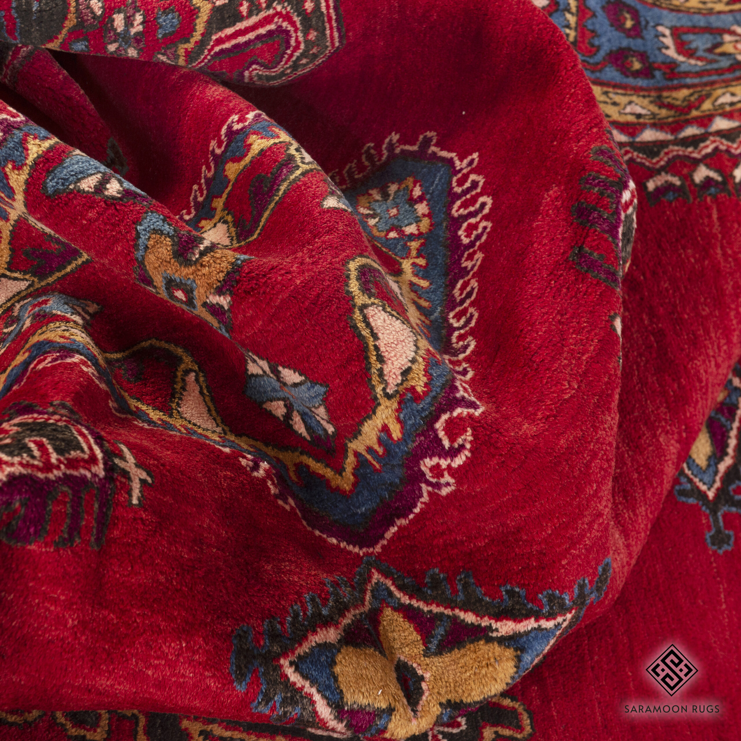 The craftsmanship evident in this approximately 70-year-old piece reflects the exceptional skill of Viss artisans, who are renowned for their robust, durable weaving techniques. The medium-density knotting creates a substantial yet supple texture that has gracefully withstood the passage of time, developing a lustrous patina that only authentic vintage pieces possess. The hand-spun wool exhibits a beautiful variation in tone, adding depth and character to each motif. This substantial size makes it ideally suited for anchoring a formal living room, dining area, or study, where its commanding presence and warm tonality will infuse the space with timeless elegance. The rug’s versatile dimensions accommodate both traditional and contemporary interiors, while its tribal character brings authenticity and cultural richness to any setting.